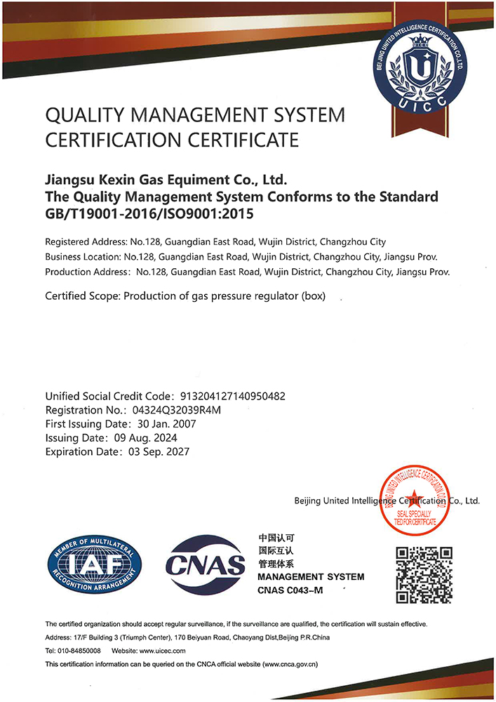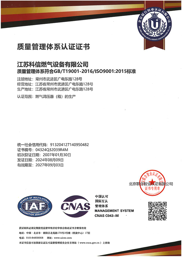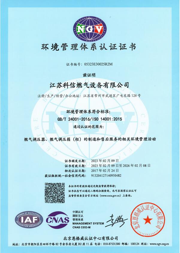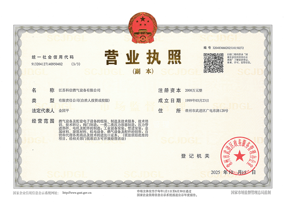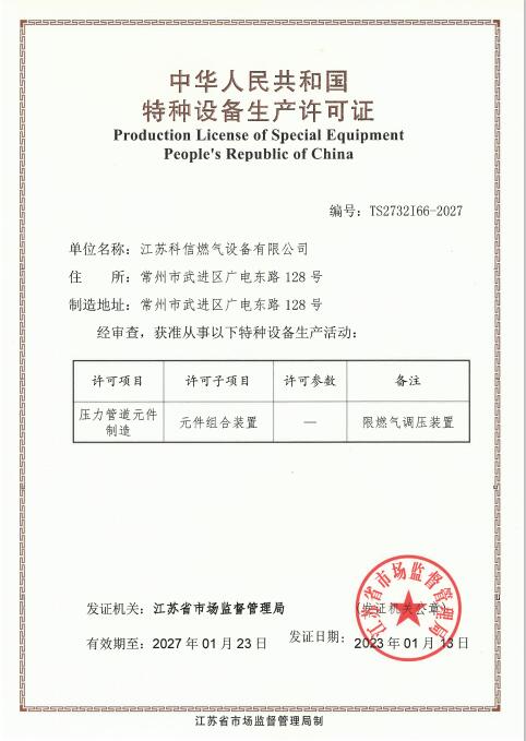 江蘇科信燃氣設備有限公司成立于1999年3月,建廠伊始,公司名稱為“常州市科信燃氣設備有限公司”,為適應公司持續發展的需求,于2014年正式更名為“江蘇科信燃氣設備有限公司”。自公司成立以來,科信一如既往專注于城市燃氣管網的配套建設和發展提供調壓設備及研究開發相關產品。